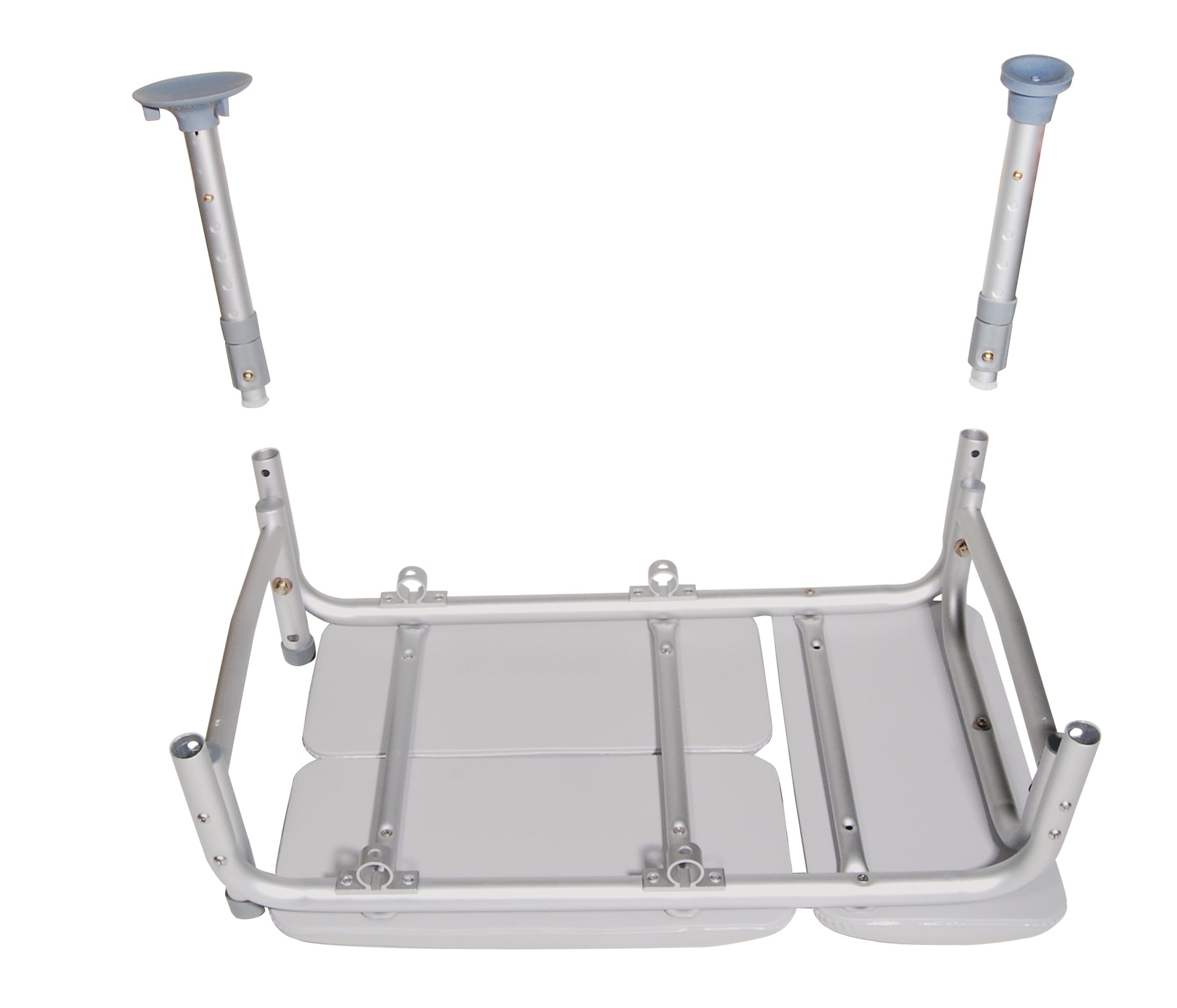 Featuring a comfortable cushioned seat and sturdy backrest, this lightweight aluminum transfer bench by Drive Medical is both comfortable and versatile. With unique "Dual Column" extension legs, you can adjust the height in 1/2" increments and the seat back adjusts without tools. The bench comes with a new "A" frame design composed of 1" aluminum frame that is light, sturdy and corrosion resistant. Extra suction cups provide additional stability and tool-free assembly will make your life even easier.