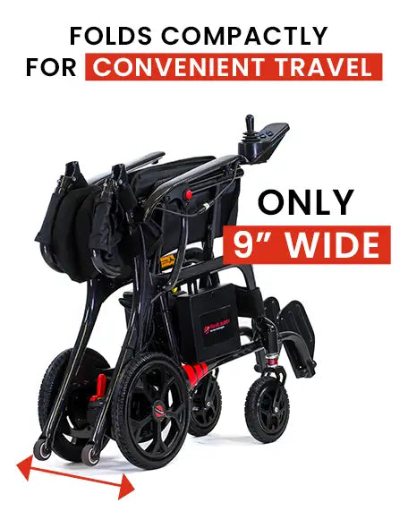 Unlike other power chairs, the AEROLUX utilizes a unique cross-folding frame that can fold the power chair to a slender 9-inch width, making it easy to store out of sight or in the back of any vehicle.