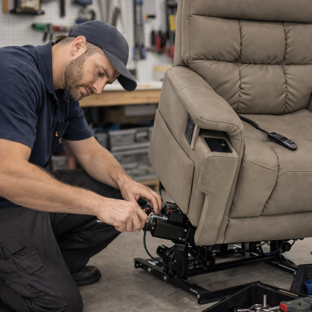 Our lift chair repair services address both mechanical and electrical issues. This includes battery replacement, power supply and hand control troubleshooting, actuator or motor concerns, and general fault diagnostics. We work to restore smooth operation and reliable lift functionality so you can continue to use your chair with confidence.