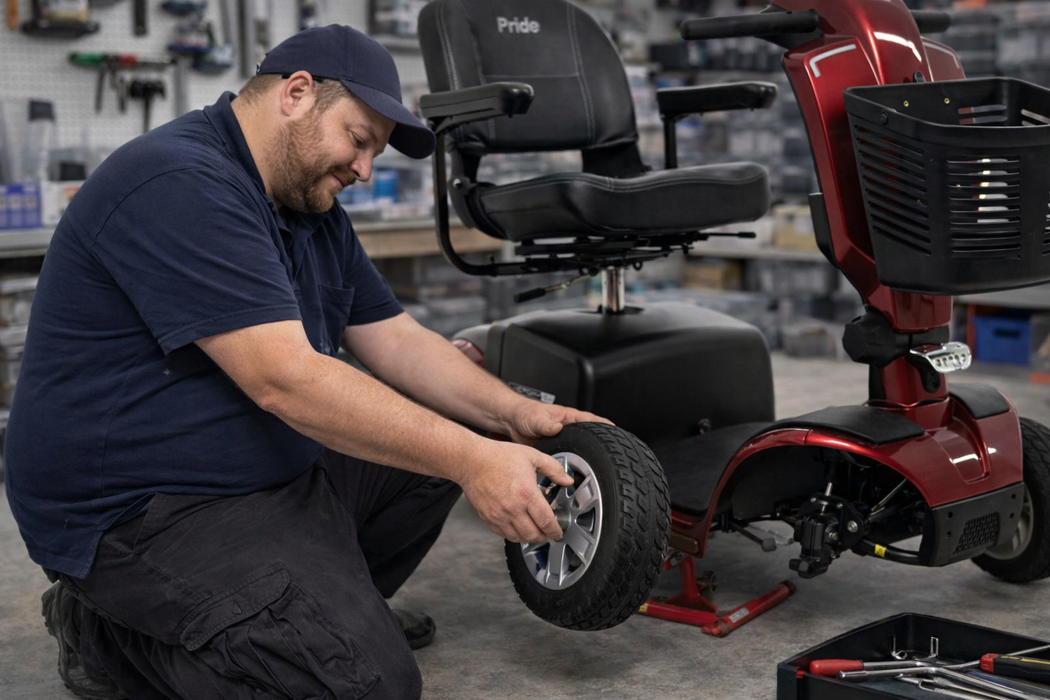 We provide repair and maintenance services for mobility scooters, addressing both mechanical and electrical issues. Services include battery testing and replacement, charger and power supply troubleshooting, tire and wheel replacement, brake and throttle adjustments, controller diagnostics, and general performance issues. Our technicians work to ensure your scooter operates smoothly, reliably, and safely for everyday mobility.