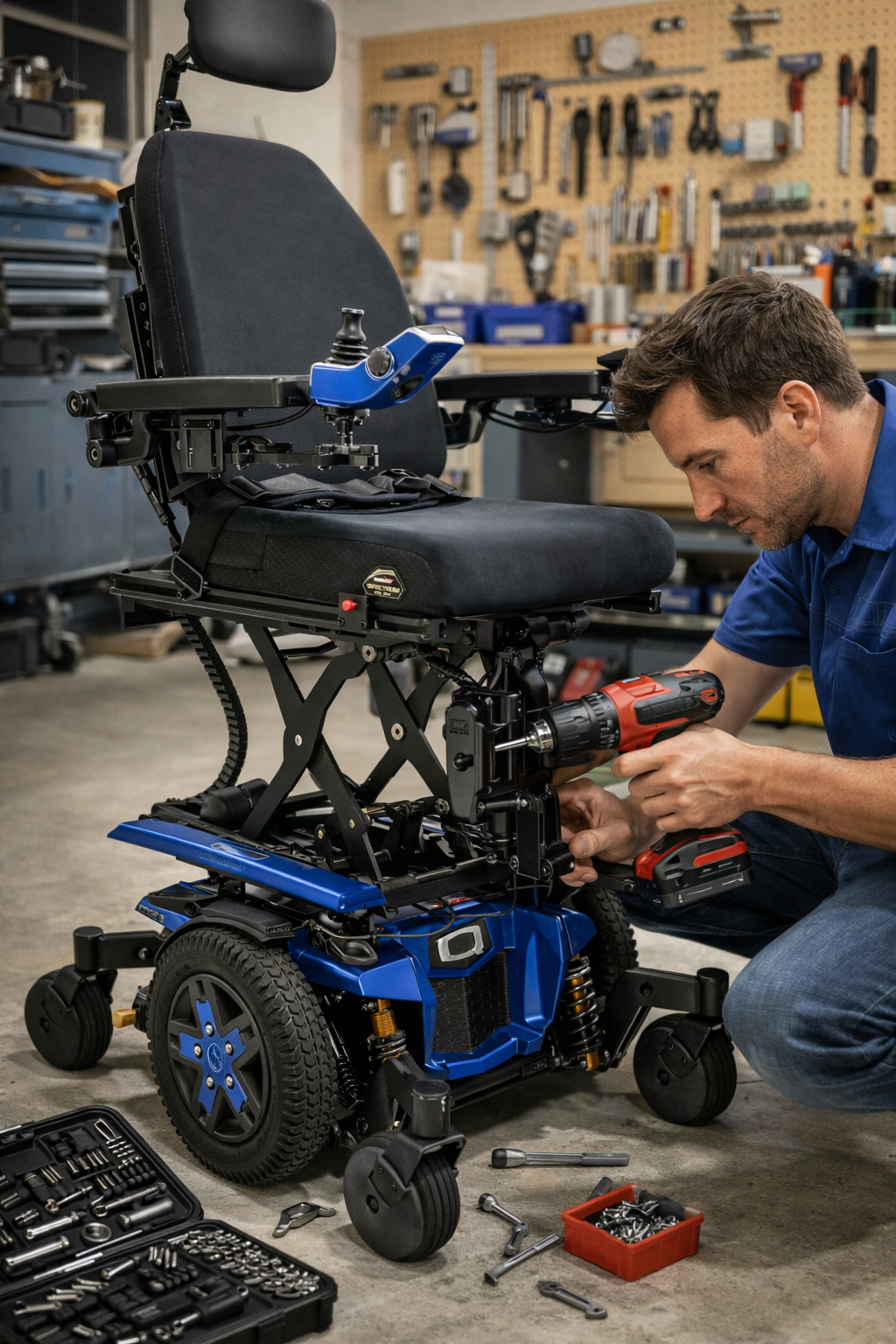 We provide repair and maintenance services for power wheelchairs, addressing both electrical and mechanical issues. Services include battery testing and replacement, joystick and controller diagnostics, motor and gearbox troubleshooting, wiring and connection repairs, tire and wheel replacement, and brake and drive system adjustments. Our technicians ensure your power wheelchair operates safely, reliably, and as intended for daily use.