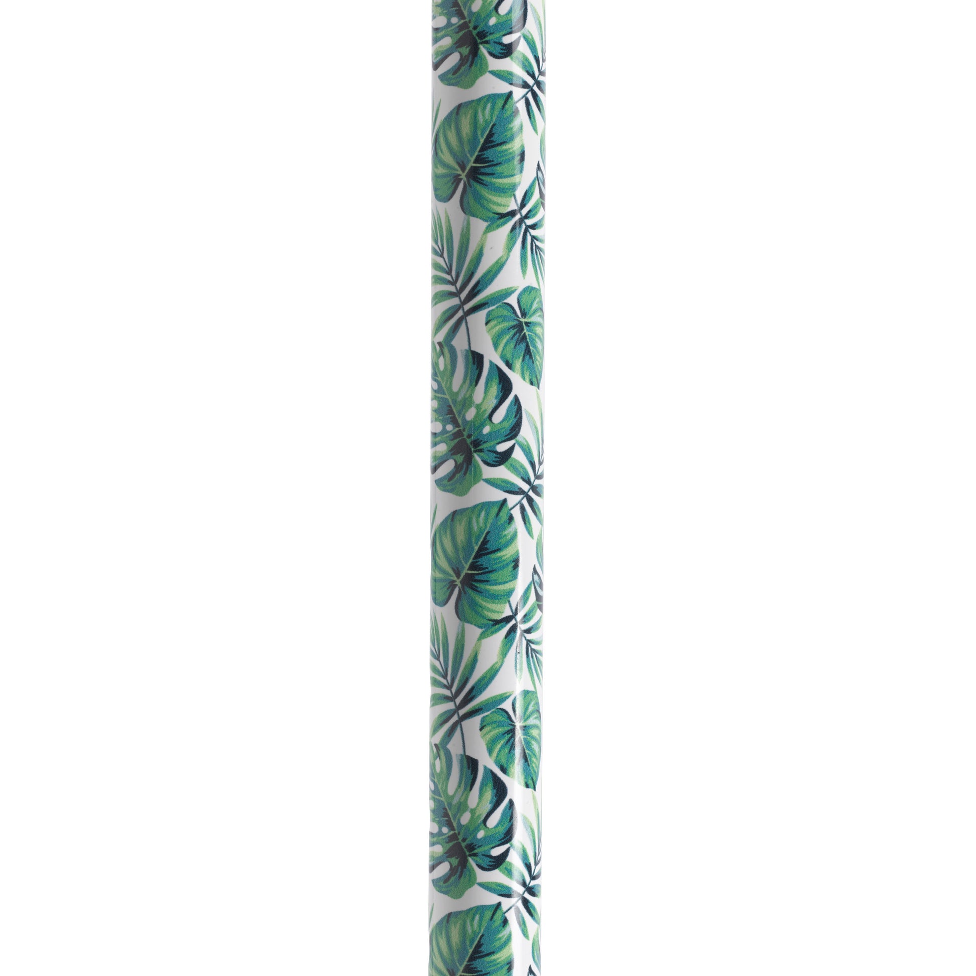 Adjustable Height Offset Handle Cane with Gel Hand Grip, Green Leaves
