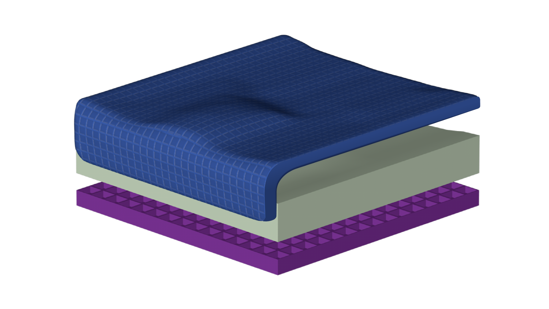 A base layer of 1” thick Purple gel with a contoured dual high density foam core and a top layer of .75” Pillow Top gel that cascades over the front of the cushion |