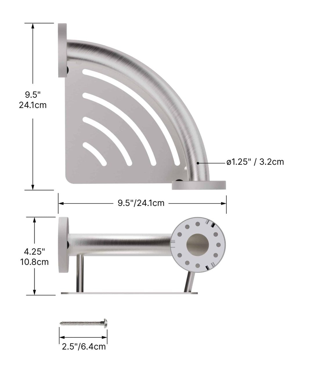 Make your bathroom stylish and safe with the Plus Corner Shelf! Available in several colors, this shelf provides both style and reliable safety for your bathing needs. It serves as a grab bar should you need extra support, and the 9-hole flange on this shelf makes installation quick and easy. Features drainage holes that prevent water and soap accumulation. With its limited space design, even the most cramped of bathrooms can look modern and be safe.
