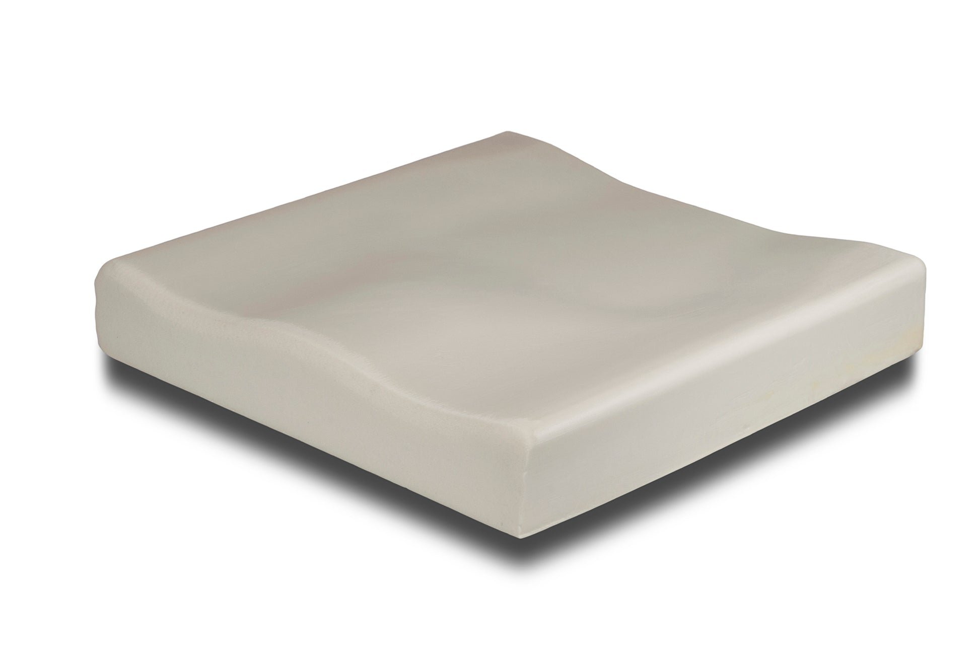 The GO cushion's dual layer foam construction features a firm bottom layer to provide a stable base of support, and a soft top layer to maximize comfort and increase sitting tolerance. Mild contouring provides additional support.