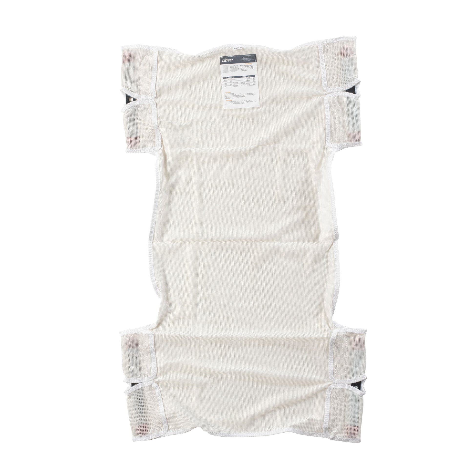With two sling points, this 39" x 25" mesh, Polyester Patient Lift Sling by Drive Medical will prove a useful accessory with any lift. The mesh-design and polyester material provide the necessary strength, as evident in the sling's 330 pound weight capacity. It works with optional chains (model #: 13019) and includes 2 or 6 cradle points.