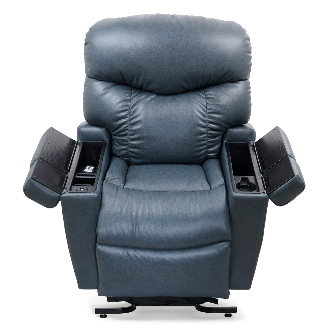 Relax and recharge in comfort and style with the Cloud+ Power Lift Recliner. The Cloud+ features a stylish top load, open-arm design with a plush seamed back and our popular posture-encouraging bucket seat to conform to your body