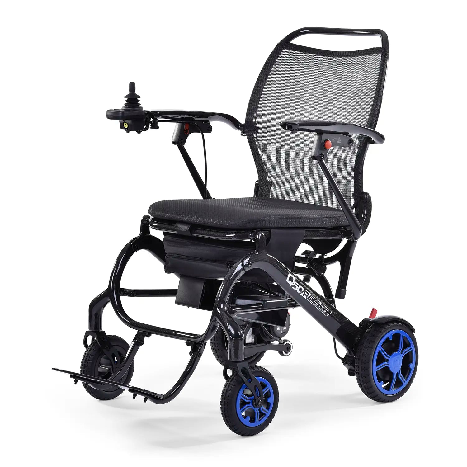 Travel lighter with QUICKIE's lightest carbon folding powerchair.