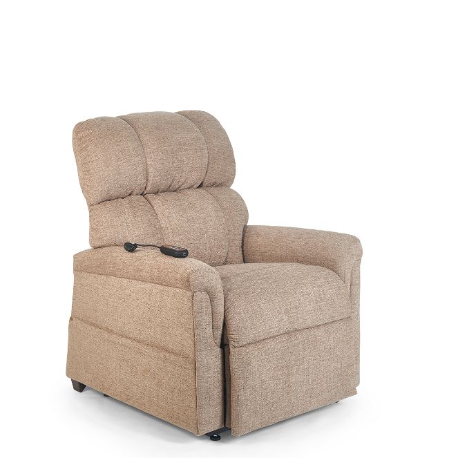 Whether you’re 5’0″ small or 7′ tall, the Comforter Series from Golden Technologies has just your size — actually four sizes! The Comforter Series from Golden is all about finding the perfect size for the perfect fit. These power lift recliners feature a new back style with a tasteful seam design, our signature seat for the utmost in comfort and support, a new arm style with additional plush padding for more comfort and value, and extended arms to provide better stability while entering and exiting the chair. Enjoy luxurious new chenille fabrics to match any décor. Find you perfect fit today!